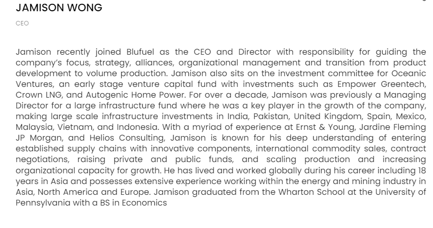 Jamison recently joined Blufuel as the CEO and Director, guiding the company’s focus, strategy, alliances, management and transition from product development to volume production.